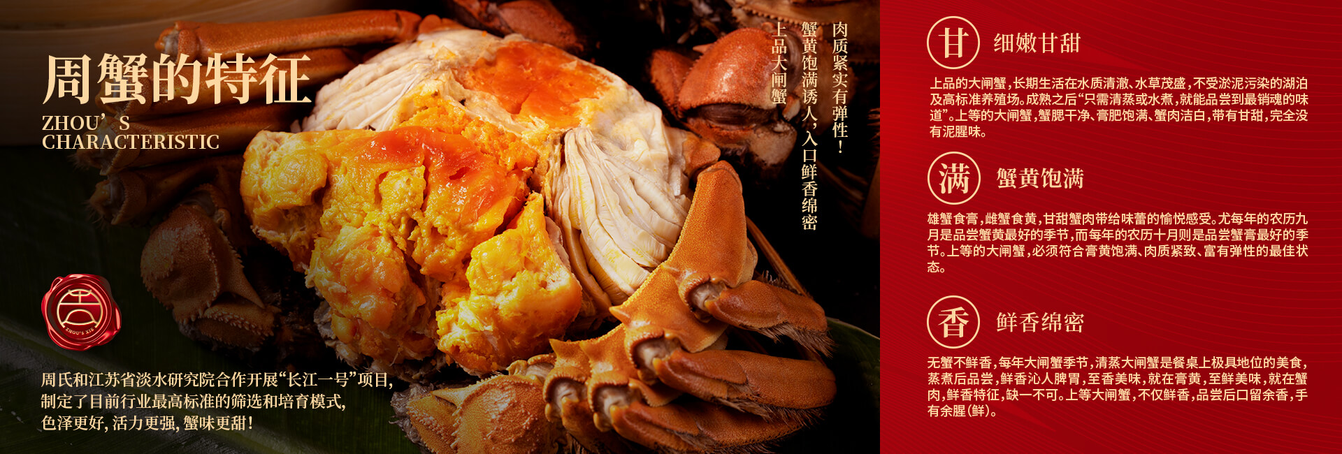 周氏水產(chǎn)精品大閘蟹,14年匠心沉淀,全國87家直營門店,100只大閘蟹只精選最優(yōu)50只。不虛標規(guī)格,不玩???